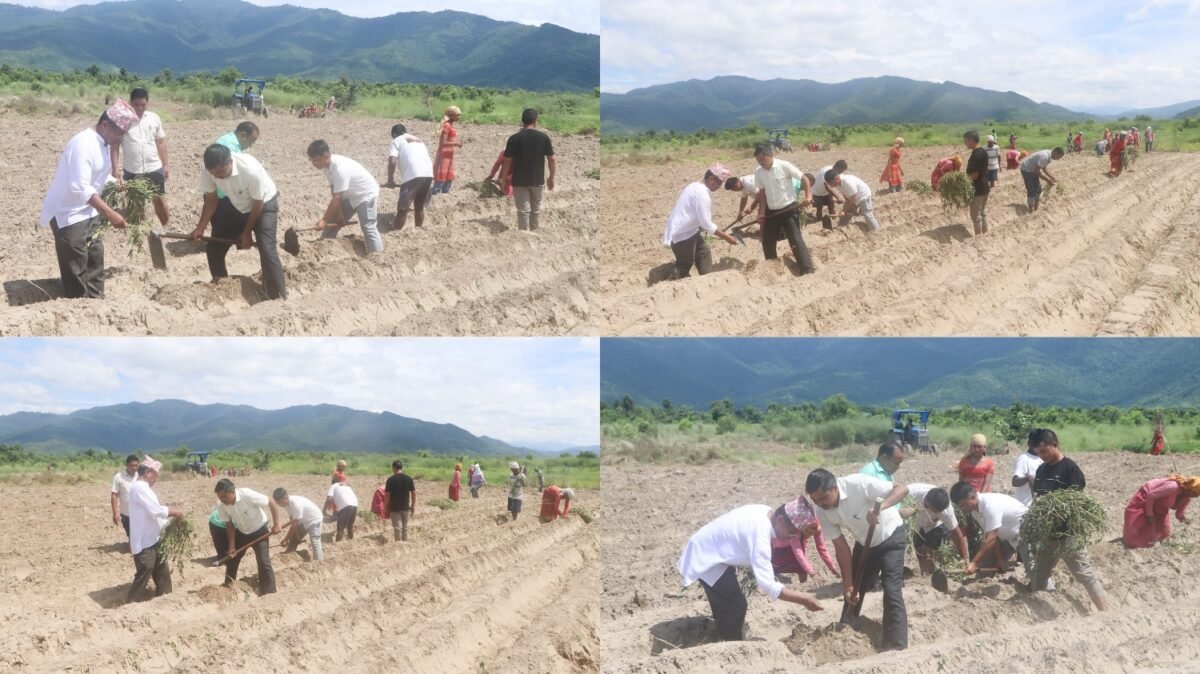 राप्ती नदिकाे बगरमा सामूहिक सखरखण्ड खेती : सभामुख र पालिका अध्यक्षद्वारा श्रमदान