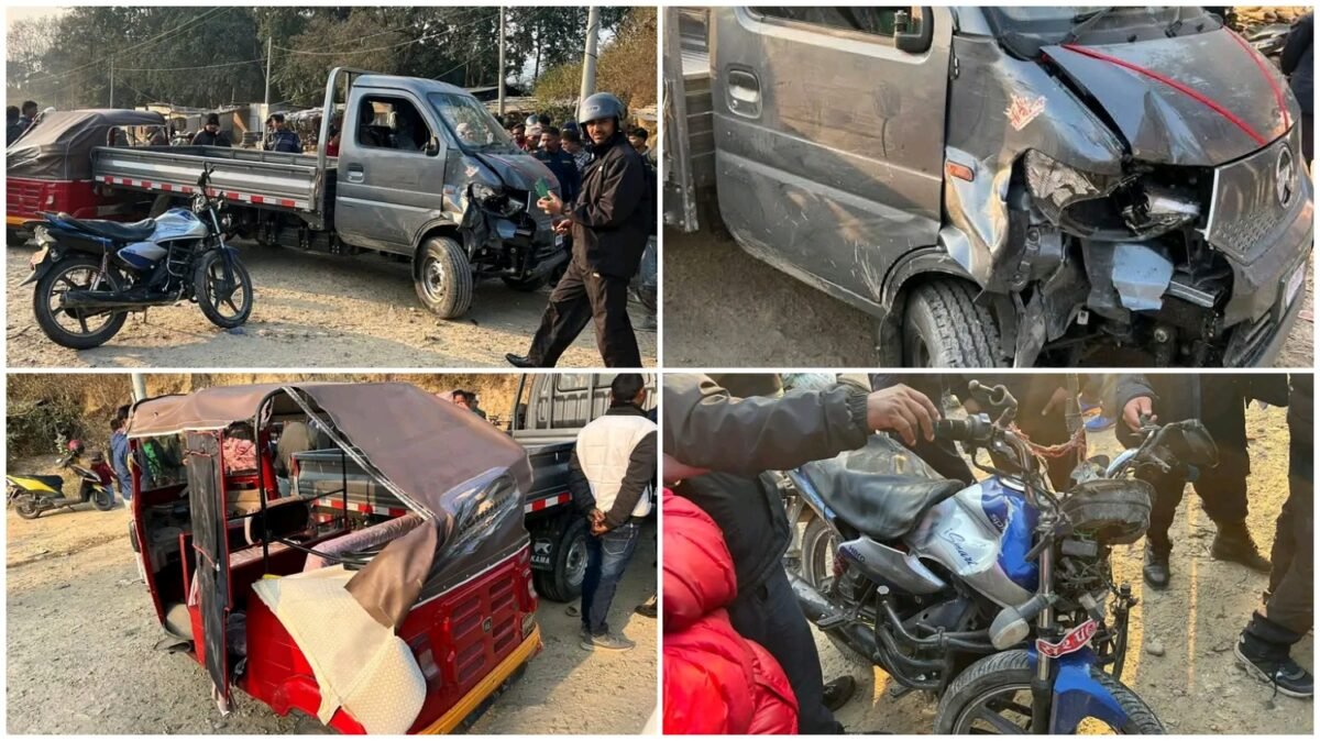 दाङकाे लमहीमा तीन वटा गाडी एक-आपसमा ठोकिँदा दुर्घटना