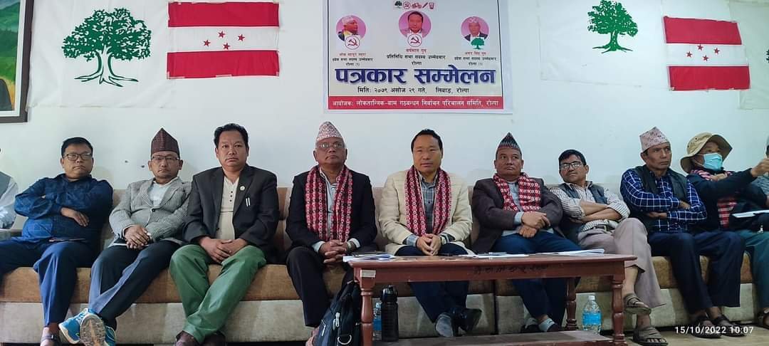 त्यसैगरी प्रदेशसभा ‘क’का उम्मेदवार जोखबहादुर महराले गठबन्धन निश्चित उद्देश्यका साथ भएकाले सबै रोल्पालीले गठबन्धनलाई बहुमतका साथ विजयी गराउन आग्रह गर्नुकाे लागि स्थानीय मिडिया र जनप्रतिनिधिहरूले सहयोग गर्नुपर्ने बताए ।