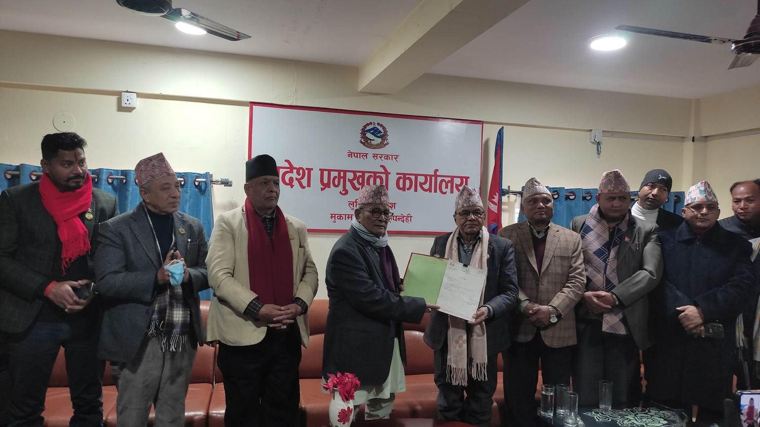 प्रदेश प्रमुख अमिक शेरचनले मुख्यमन्त्रीमा दाबी पेस गर्न बुधबार अपरान्ह ४ बजेसम्मको समयसीमा दिएकोमा निर्धारित समयसीमाभित्रै गिरीले विभिन्न दलका सांसदहरुको हस्ताक्षरसहित दाबी पेस गरेका थिए ।