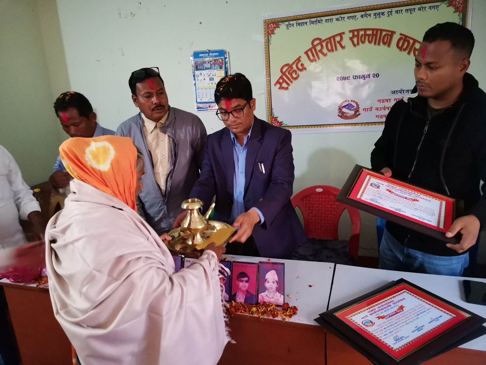 कार्यक्रममा सहिद गिरी प्रसाद घर्तिका आमा मनिदेवी घर्ती मगर,सहिद निर्मल रावतका बुवा बिष्णु बहादुर रावत क्षेत्री, सहिद नन्द बहादुर केसीकी आमा खडक कुमारी खत्री,सहिद गिता घर्तिकी आमा गौमती घर्ति मगर, सहिद बलदेव चौधरीका बुवा लक्षमा चौधरी, सहिद गिरिराज पोख्रेलका आमा इश्वरा देवी पोख्रेल, सहिद माया चौधरीको आमा दसनी कुमारी चौधरी,सहिद यम बहादुर डालाको श्रीमती चमिसरा डालामगर,सहिद आलोक गिरिको आमा तुलसा गिरि लाई सम्मान गरिएको छ।