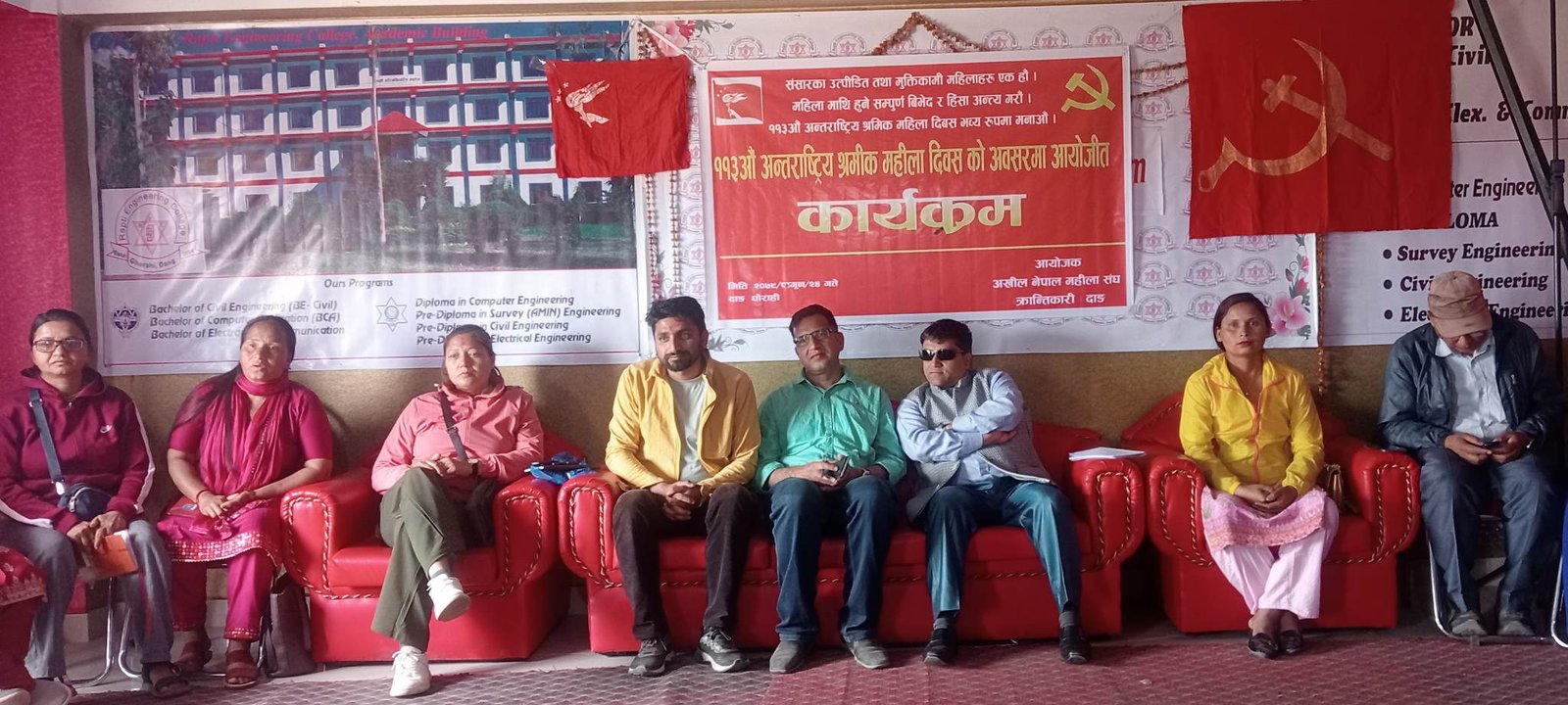 घोराही, २४ फागुन । नेपाल कम्युनिस्ट पार्टीका केन्द्रीय सदस्य राप्तीब्यूरो इन्चार्ज सविन सीले नेपालमा महिलाको अधिकार अझै पूरा नभएको बताएका छन् । अखिल नेपाल महिला संघ क्रान्तिकारी दाङले ११३ औं अन्तर्राष्ट्रिय श्रमिक महिला दिवसको अवसरमा बुधबार घोराहीको राप्ती इन्जिनियरिङ कलेजमा आयोजित कार्यक्रममा बोल्दै उनले यस्तो बताएका हुन् ।