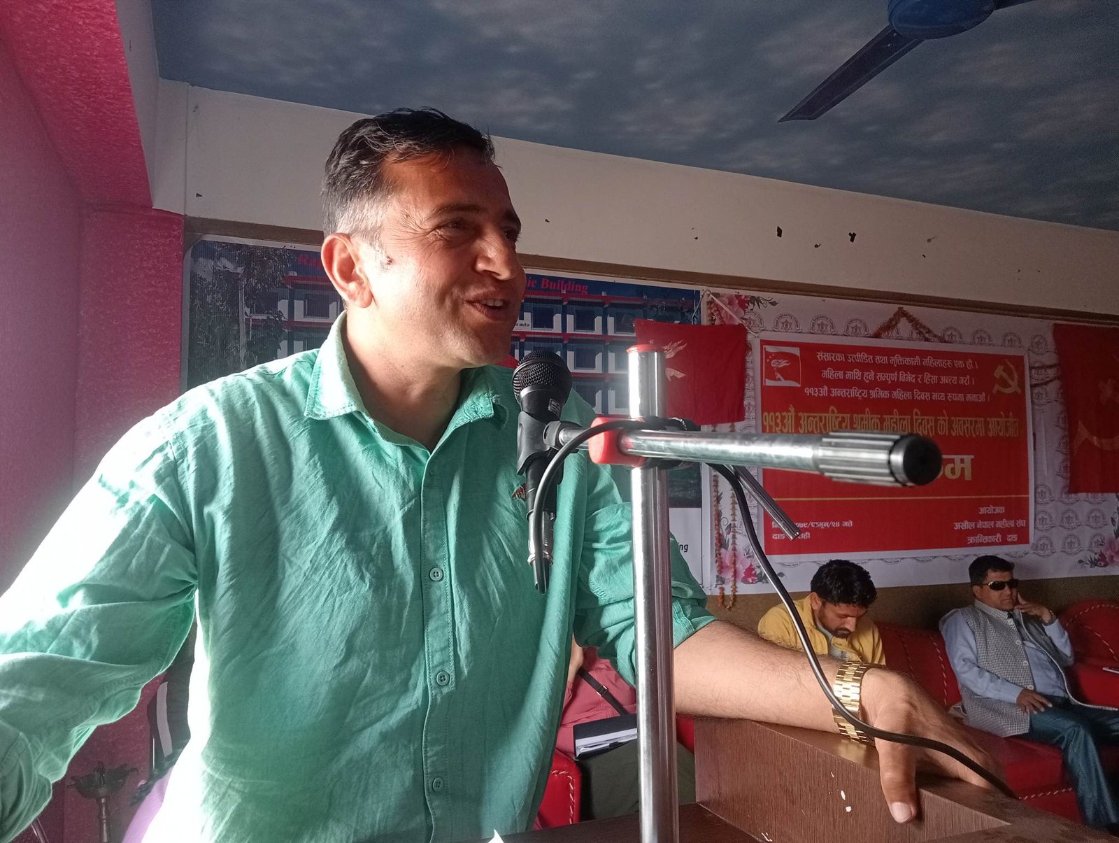 कार्यक्रमका प्रमुख अतिथि समेत रहेका इन्चार्ज सविन सीले नेपाल थुप्रै आन्दोलन र संघर्षले धेरै महिलाहरुले अधिकार पनि प्राप्त गरेका छन्, तर महिलाहरूले जति अधिकार प्राप्त गर्नु पार्थ्यो, त्यो अझै प्राप्त नभएको बताए । `नेपालको राजनीति व्यवस्था एक प्रकारले बदलेका छौं, तर हामीले आर्थिक व्यवस्था अझै बदल्न सकेका छैनौं´ उनले भने `आर्थिक व्यवस्था गरेपछि मात्रै महिलाहरुको जीवन बदल्ने स्थिति देखा पर्दछ । त्यसको लागि हामीले एक पटक नेपालको राजनीति व्यवस्था पनि एलिकति बदल्न बाँकी छ, त्यसलाई पनि बदल्नु पर्दछ । र, त्यस पछाडि मूलतः त्यो राजनीति व्यवस्थाले संरक्षण गरेर राखेको आर्थिक व्यवस्था पनि बदल्नु पर्दछ ।´