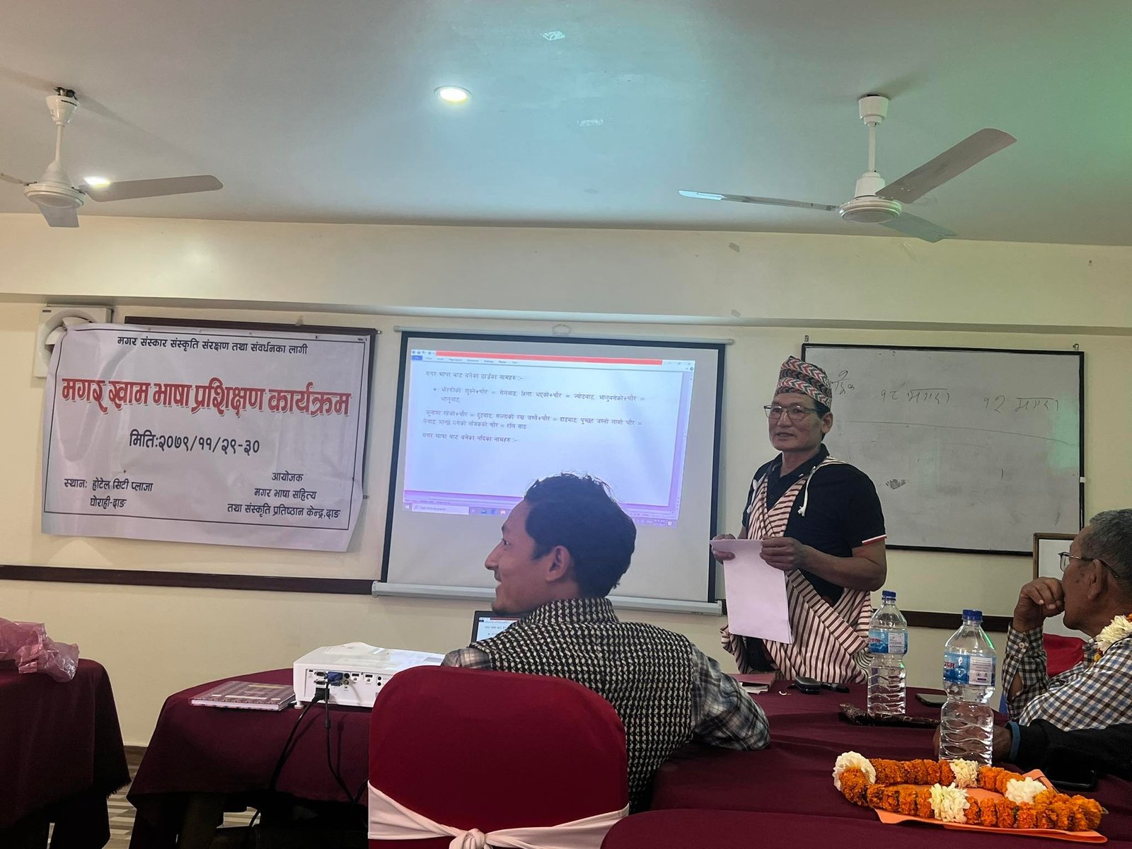 घाेराही, २९ फागुन । मगर भाषा साहित्य तथा संस्कृति प्रतिष्ठान केन्द्र दाङकाे आयाेजनमा आजदेखि दाङकाे घाेराहीमा दुईदिने मगर खाम भाषा प्रशिक्षण कार्यक्रम शुरू भएकाे छ ।