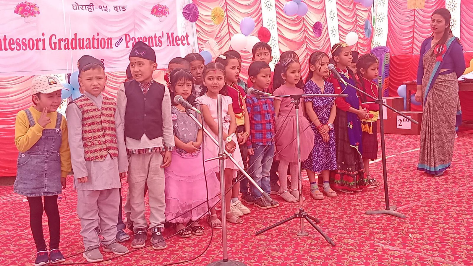 उक्त कार्यक्रममा विद्यालयका प्री- टुका २१ जना विद्यार्थीहरुलाई दीक्षित भएका छन् भने मन्टेश्वरीका विद्यार्थीलाई विविधमा पुरस्कार वितरण तथा सम्मान गरिएको थियो ।