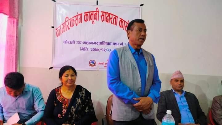 घोराही उपमहानगरपालिकाले वडा तहका जनप्रतिनिधि र टोल विकास संस्थाका पदाधिकारीहरुलाई कानुनी साक्षरता कक्षा सञ्चालन गरेको छ ।