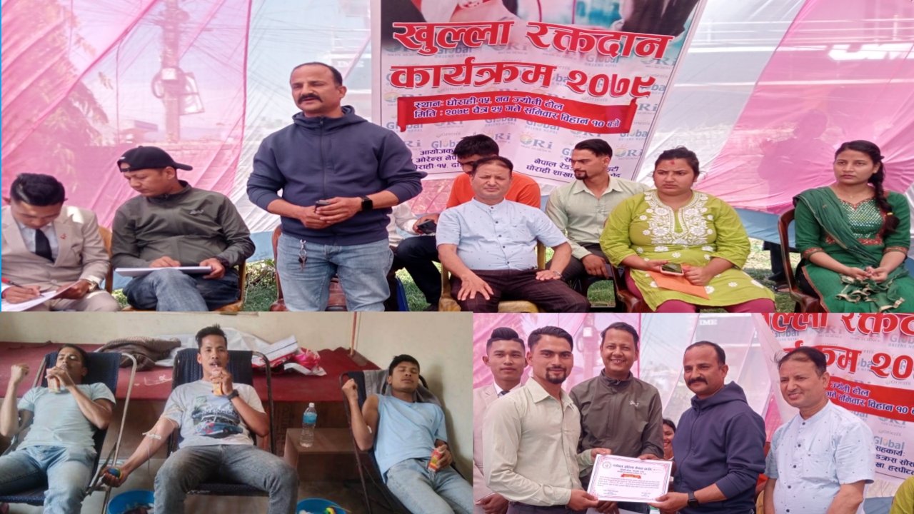 घोराही, २५ चैत । ग्लोबल ओरियन्स नेपाल प्राली दाङले शनिबार घोराहीमा रक्तदान कार्यक्रम सम्पन्न गरेको छ । प्राली घोराहीका प्रतिनिधि उमेश चौधरीको अध्यक्षता तथा घोराही उपमहानगरपालिका वडा नंम्वर १५ का वडा अध्यक्ष रमेशकुमार पाण्डेको प्रमुख आतिथ्यमा एक औपचारिक कार्यक्रम गरी रक्तदान सुरु गरिएको हो ।