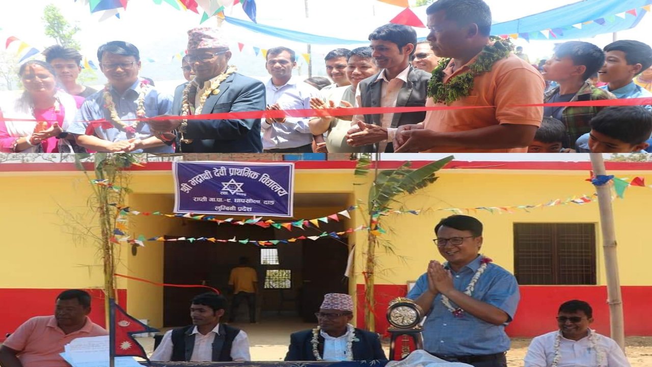 देउखुरी । दाङको राप्ती गाउँपालिका वडा नम्बर नाै धापखाेलामा रहेको भद्रक्षीदेवी प्राथमिक विद्यालयकाे नवनिर्मित चार काेठे पक्की भवनको आईतवार उद्घाटन गरिएको छ।