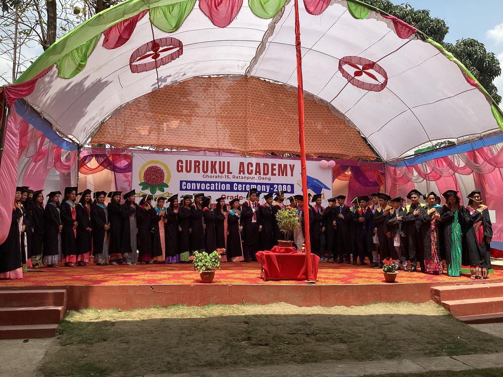 घोराही । घोराही – १५ रतरपुरमा संचालित गुरुकुल एकेडेमीका कक्षा १२ का बिद्यार्थीहरु दीक्षित भएका छन् । बिद्यालयका २०८० सालको १२ कक्षाको परीक्षामा सम्मिलित भएका बिद्यार्थीहरुलाई दीक्षित गरिएको हो । बिद्यालयको प्रांगनमा शनिबार शनिवार एक कार्यक्रम गरी दीक्षान्त कार्यक्रम सम्पन्न गरिएको हो ।