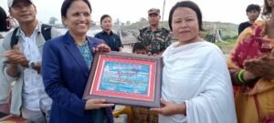 नगर प्रमुख भरतबहादुर थापा जिल्ला बाहिर रहेकाले उपप्रमुख लीला मोक्तानले कदरपत्र प्रदान गर्दै मन्त्री शर्मालाई सम्मान गर्नुभएको थियो ।