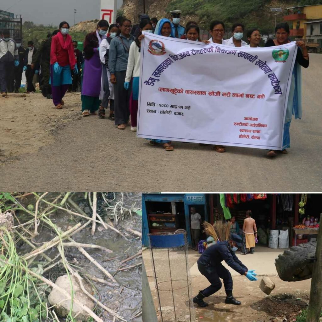रोल्पा । रोल्पाको रुन्टीगढी गाउँपालिकामा डेंगु लगाएत किटजन्य रोगहरुसम्बन्धी सचेतनामुलक कार्यक्रम सम्पन्न भएको छ । औलो, कालाजार,डेंगु जस्ता खतरानाक रोग लामखुट्टेको टोकाइ बाटनै लाग्ने हुँदा लामखुट्टेको बासस्थान खोजी गरि यसको लार्भा नष्ट गर्ने लक्ष्यका साथ सचेतनामुलक कार्यक्रम गरिएको हो ।
