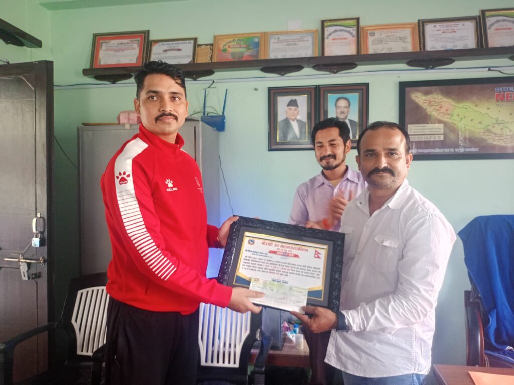 नगद पचिस हजार सहित सम्मान पत्रले वडा अध्यक्ष रमेशकुमार पाण्डेले शुक्रबार एक कार्यक्रम गरि सम्मान गरेका हुन ।