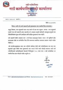 गाउँ कार्यपालिकाकाे निर्णय अनुसार विदा दिएको पालिकाका अध्यक्ष प्रकाश विष्ट द्धारा जारी सुचनामा उल्लेख छ ।