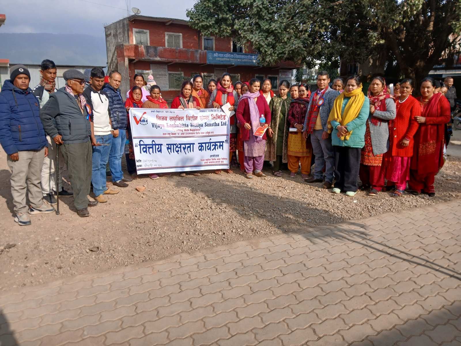 दाङ। विजय लघुवित्त वित्तीय संस्थाले देशव्यापी रुपमा वित्तीय साक्षरता कार्यक्रम संचालनमा ल्याएको छ । वित्तीय साक्षरताको महत्वका बारेमा जागरण ल्याउने, स्थानीय समुदायमा वित्तीय अनुशासन, बचत, कर्जा व्यवस्थापन र जोखिम न्यूनीकरणका महत्वपूर्ण पक्षहरूमा जनचेतना अभिवृद्धि गर्ने उद्धेश्यले संस्थाका विभिन्न शाखाहरुबाट देशभर वित्तीय साक्षरता कार्यक्रम अभियान संचालनमा ल्याएको हो ।