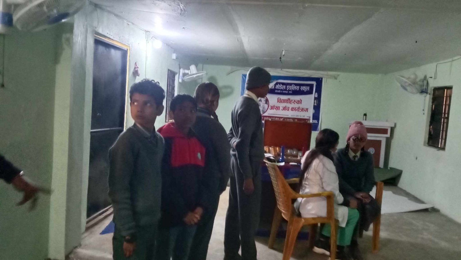 कक्षा २ देखि ८ कक्षासम्म दुइ सय बढी विद्यार्थीहरुको आँखा जाँच गरिएको थियो । चश्मा लगाउनुपर्ने ५ जना विद्यार्थीहरुलाई निशुल्क चश्मा समेत बितरण गरिएको विद्यालयले जनाएको छ ।