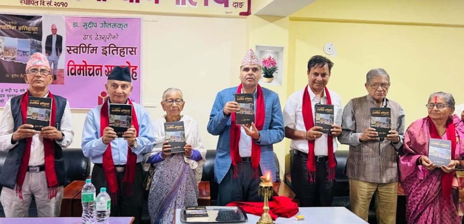 दाङ । पत्रकार तथा इतिहासकार डा सुदीप गौतमद्वारा लिखित पुस्तक ‘दाङ देउखुरीको स्वर्णिम इतिहास’ पुस्तकको विमोचन गरिएको छ । संस्कृतिविद् राधिकादेवी आचार्यको अध्यक्षतामा बिहिबार घोराहीमा भएको कार्यक्रममा नेपाल संस्कृत विश्वविद्यालय बेलझुण्डीका उपकुलपति प्रा डा धनेश्वर नेपालले पुस्तकको विमोचन गरेका हुन् ।