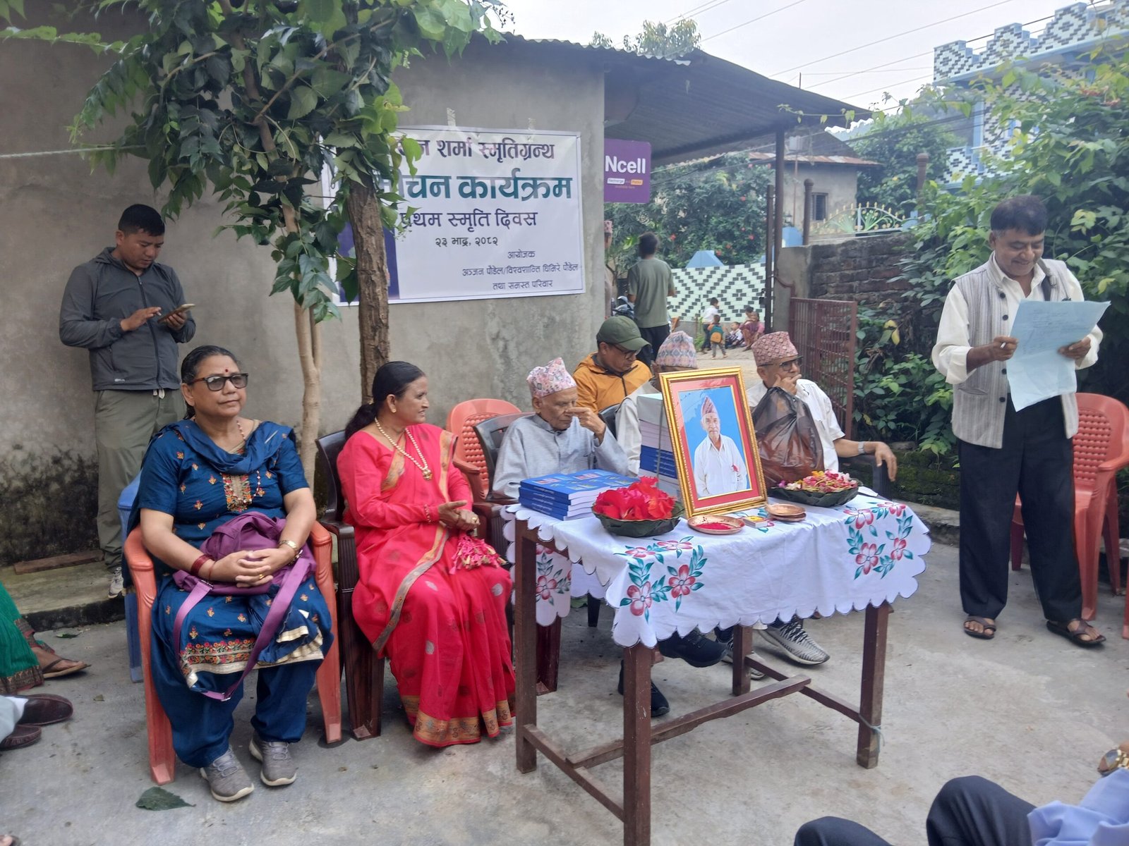 स्मृति ग्रन्थका बारेमा सम्पादन समिति सदस्य डा. टीकाराम उदासीले जानकारी गराउनुभयो भने अन्त्यमा छोरी एवं पूर्वमन्त्री रेखा शर्माले धन्यवाद मन्तव्य व्यक्त गर्नुभयो।