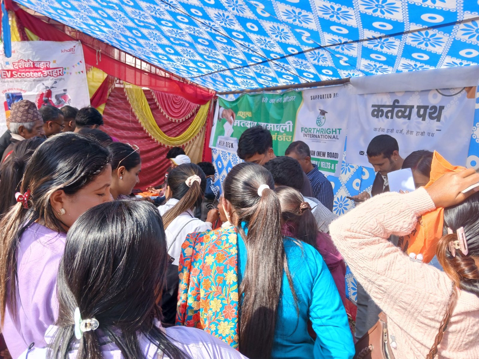 दाङको घोराहीस्थित प्रदेश निर्वाचन कार्यालयमा २७ कार्तिकमा देखिएको नयाँ मतदाताको भीड। नामावली संकलनको अवधि सकिदै गर्दा नयाँ मतदाताको आकर्षण देखिएको छ।