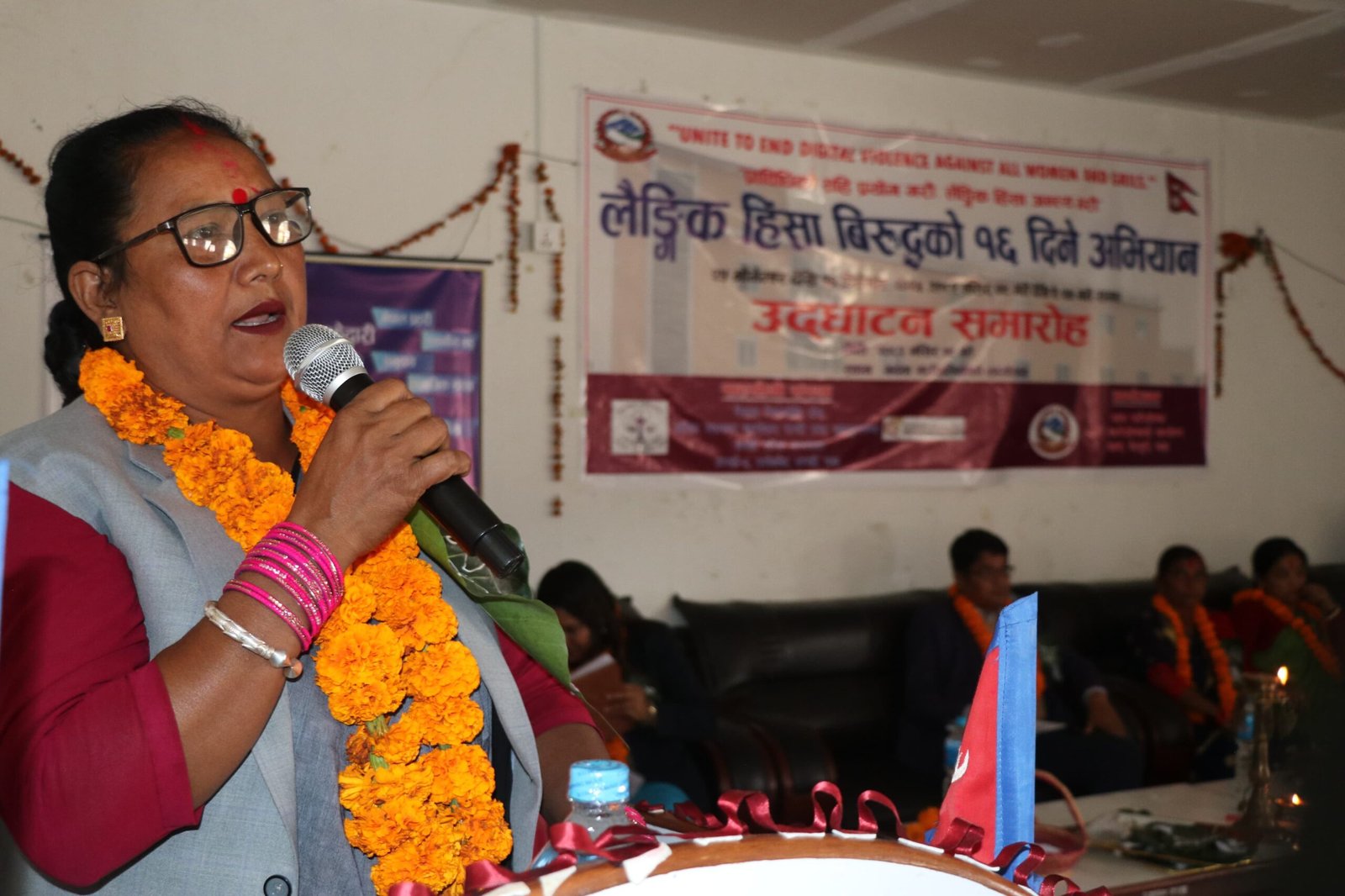 लैङ्गिक हिंसाविरुद्धको १६ दिने अभियान सुरु शुभारम्भ कार्यक्रममा बोल्दै गढवा गाउँपालिका उपाध्यक्ष शारदा कुमारी चौधरीले हिँसामा परेका महिलालाई नजिकैको प्रहरी, त्यस क्षेत्रमा काम गर्ने संघ संस्था, राष्ट्रिय महिला आयोग वा मानव अधिकार संस्थाहरूमा उजुरी दिएर न्याय प्राप्तिको लागि आवश्यक सहयोग माग्न अभियानमार्फत आह्वान गरिने बताउनु भयो।