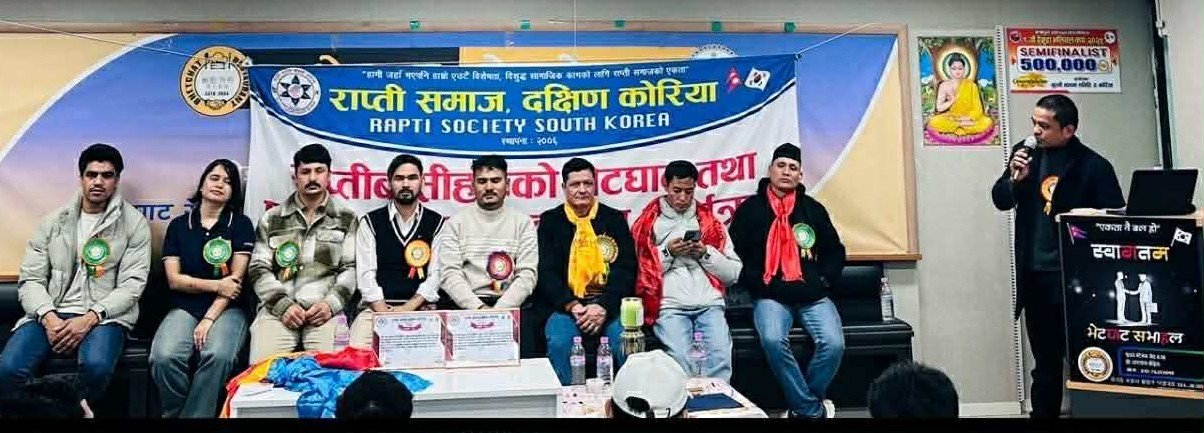 राप्ती समाज दक्षिण कोरियाद्वारा आयोजित राप्तीबासीहरूको भेटघाट तथा प्रमाणपत्र हस्तान्तरण कार्यक्रम आइतबार नोभेम्बर तेस्रो–तीसमा सुवनस्थित भेटघाट रेस्टुरेन्टको सभाहलमा भव्यतापूर्वक सम्पन्न भयो । कोरियाका विभिन्न सहरमा बसोबास गर्दै श्रम, व्यवसाय तथा शिक्षा क्षेत्रमा सक्रिय राप्तीबासी तथा शुभचिन्तकहरूको उल्लेखनीय उपस्थितिले कार्यक्रम उत्साहपूर्ण बनेको थियो ।