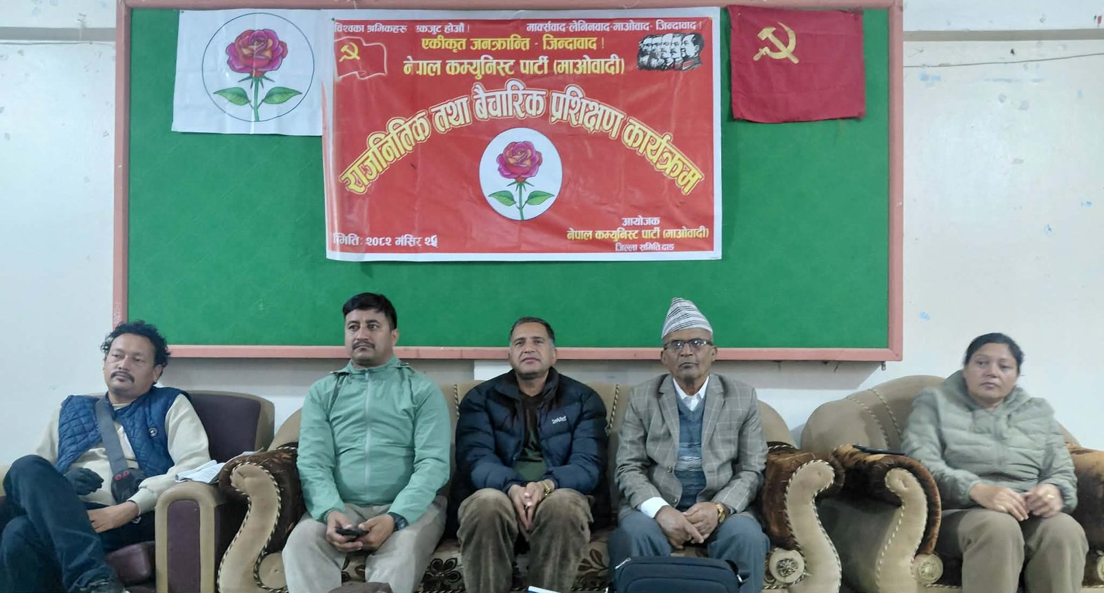 घोराही । नेपाल कम्युनिस्ट पार्टी (माओवादी) दाङको राजनीतिक तथा वैचारिक प्रशिक्षण घोराहीमा सम्पन्न भएको छ । अगुवा कार्यकर्ताका लागि आयोजित वैचारिक प्रशिक्षण कार्यक्रम शुक्रबार घोराहीस्थित उद्योग वाणिज्य संघको सभाहलमा सम्पन्न भएको थियो ।