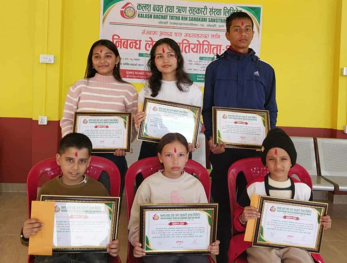 दाङ । दाङकाे घाेराही १५ स्थित कलश बचत तथा ऋण सहकारी संस्थाकाे शिक्षा उपसमितिकाे आयाेजनामा बाल सदस्यहरूका लागि निबन्ध लेखन प्रतियोगिता सम्पन्न भएको छ ।