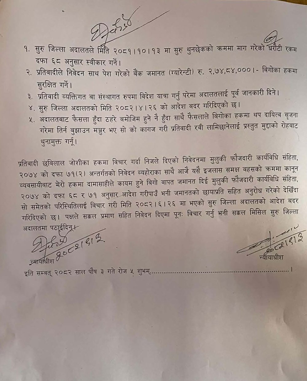रवि लामिछानेलाई रिहा गर्न अदालतले के के राख्यो शर्त ?