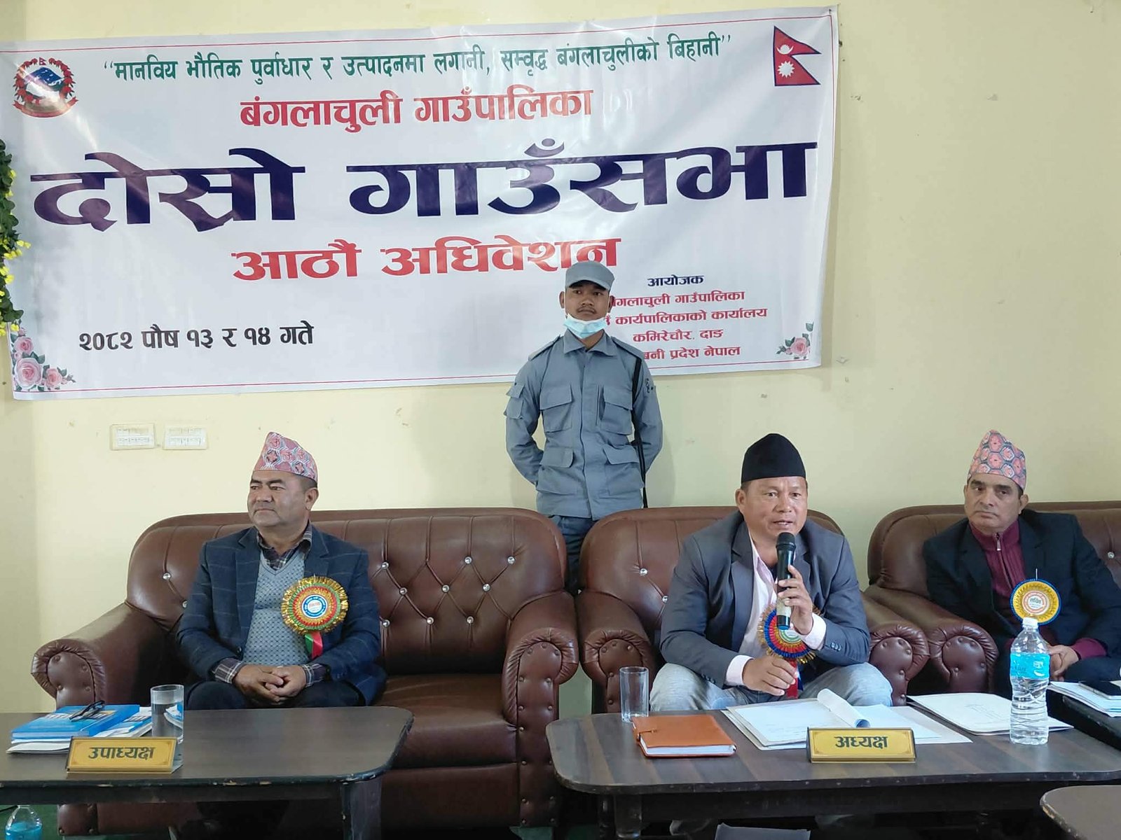 गाउँसभामा गाउँपालिका अध्यक्ष तुलसीराम पुनले गाउँसभामा गाउँपालिकाको चालू आर्थिक वर्ष २०८२/०८३ को अर्धवार्षिक प्रगति समीक्षासम्बन्धी विधेयक २०८२ प्रस्तुत गर्दै स्थानीय सुशासन, समृद्धि र सामाजिक न्याय कायम गर्ने दृढ संकल्पलाई व्यवहारमा रुपान्तरण गर्दै नागरिक सेवामा निरन्तर क्रियाशील रहेको बताउनुभयो । उहाँले स्थानीय कानुन निर्माण तथा प्रभावकारी कार्यान्वयन, गाउँपालिकाको गुरुयोजना तथा योजनाको तर्जुमा गर्नका लागि संघ र प्रदेशको समन्वय तथा सहकार्यको प्रयासले पालिकालाई उल्लेख्य सफलता प्राप्त भएको जानकारी दिनुभयो ।