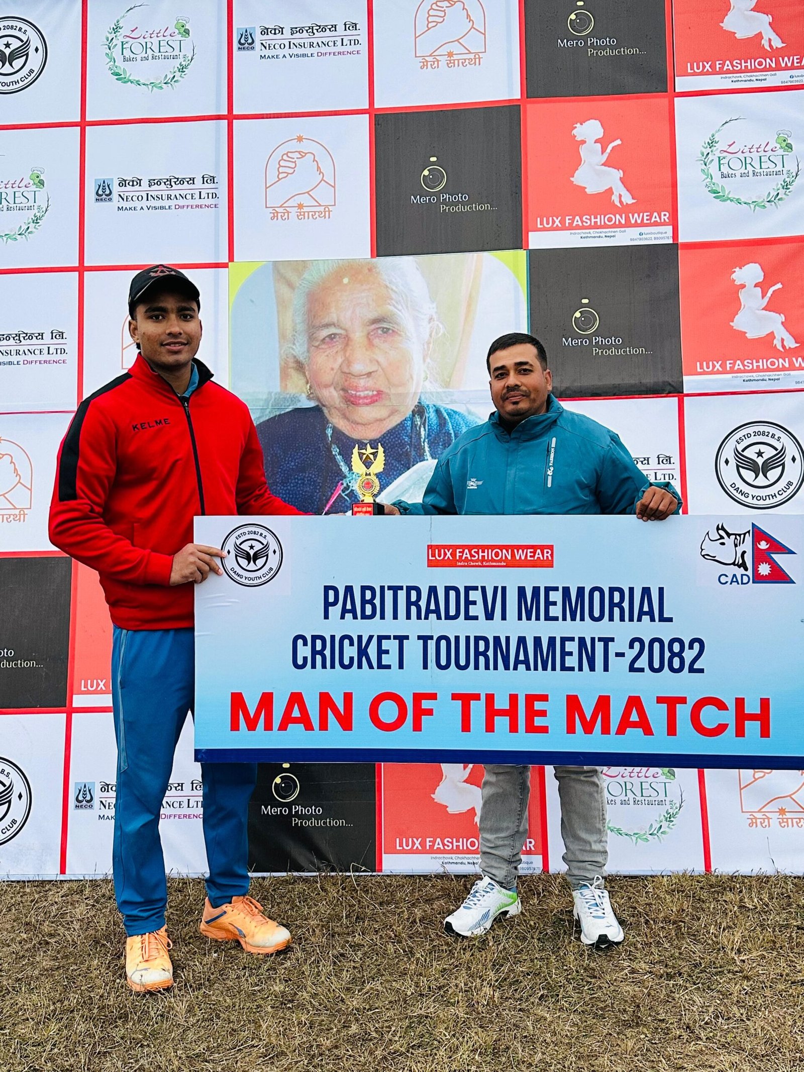 दाङ । दाङ युथ क्लबको आयोजनामा तथा दाङ जिल्ला क्रिकेट संघको प्राविधिक सहयोगमा आइतबारदेखि सञ्चालन भएको पवित्रादेवी स्मृति टी–२० क्रिकेट प्रतियोगिता–२०८२ अन्तर्गत दोस्रो दिन दुई खेल सम्पन्न भएका छन्।