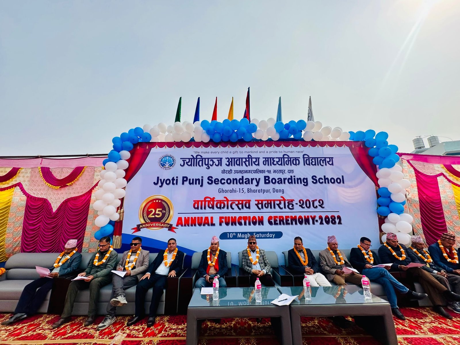 घोराही । दाङको घोराहीमा रहेको ज्योतिपुञ्ज आवासीय माध्यमिक विद्यालयको २५ औं वार्षिकोत्सव शनिबार सम्पन्न भएको छ । विद्यालय व्यवस्थापन समितिका अध्यक्ष युवराज थपलियाको अध्यक्षता एवं नेपाल संस्कृत विश्वविद्यालय का उपकुलपति प्राडा धनेश्वर नेपालकोे प्रमुख आतिथ्यतामा कार्यक्रम सम्पन्न भएको थियो ।