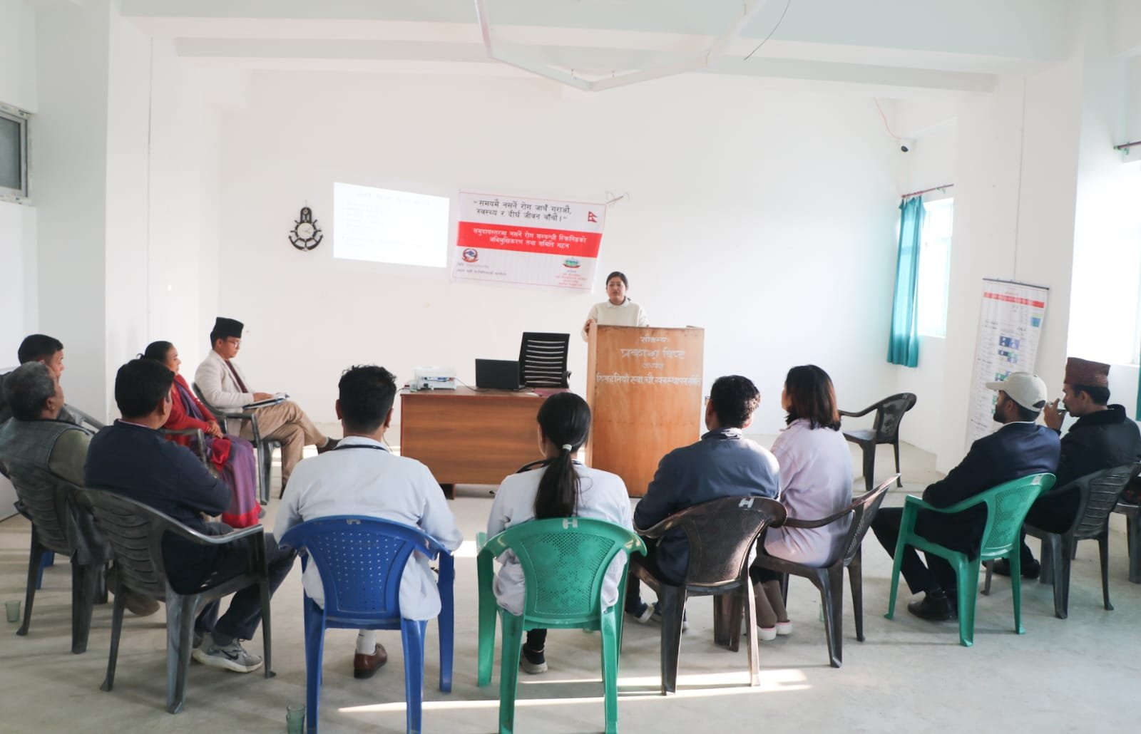 बुधबार राप्ती आधारभूत अस्पताल कालापानीमा समुदायस्तरमा नसर्ने रोगसम्बन्धी स्क्रिनिङ अभिमुखीकरण तथा समिति गठन कार्यक्रम स्वास्थ्य शाखा प्रमुख नारायण राउतले साे विषयमा जानकारी गराउनु भएको हाे।